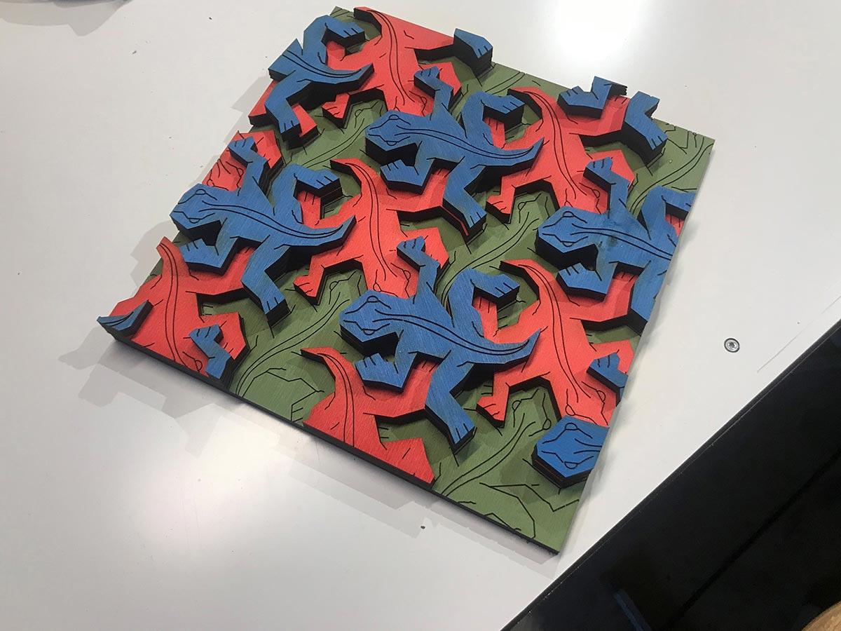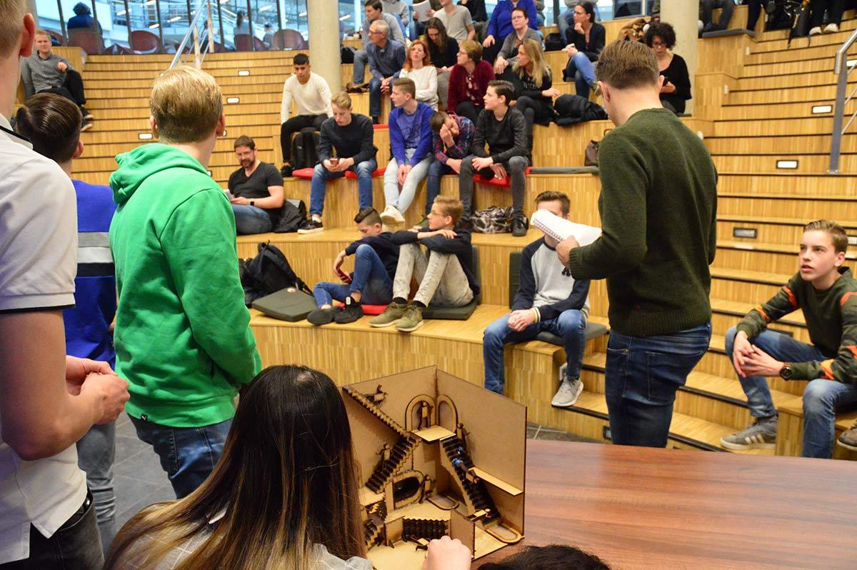 De wereldberoemde grafische kunstenaar M.C. Escher staat bekend om zijn spel met de begrippen eeuwigheid en oneindigheid en het toveren met perspectief en diepte. Zijn oeuvre is gevuld met vele indrukwekkende visuele vondsten. Vondsten die je op het verkeerde been zetten, je dwingen om echt goed te kijken en je dan alsnog laten afvragen wat er nu precies gebeurt. Dit visuele vernuft is lastig te vatten voor bezoekers met een visuele beperking. Eschers kunst lijkt dan ook nauwelijks geschikt voor blinden en slechtzienden. Museum Escher in Het Paleis legt zich daar niet bij neer. Daarom zijn we een uniek samenwerkingsproject gestart met de Haagse Hogeschool, de middelbare school ISW Hoogeland, Koninklijke Visio en stichting Voorall. Technasium leerlingen van ISW Hoogeland onderzochten hoe de werken van Escher toegankelijk gemaakt kunnen worden voor mensen met een visuele beperking. Dat project heeft geresulteerd in een aantal unieke stukken die gebruikt worden om niet alleen werk van M.C. Escher voelbaar te maken, maar juist ook om het verhaal achter de kunstenaar en zijn technieken beleefbaar te maken voor mensen die blind of visueel beperkt zijn. Tijdens een zeer geslaagde openingsavond in november 2018 zijn deze stukken onthuld en getoond aan de doelgroep. Daarna zijn ze opgenomen in de reguliere programmering van het museum in de vorm van een serie rondleidingen voor blinden en slechtzienden, waarbij de stukken als leidend element in de zalen staan opgesteld. Ook is er een speciale versie van onze Highlights audiotour gemaakt, die blinden en slechtzienden tot in detail kennis laat nemen van 8 topstukken.