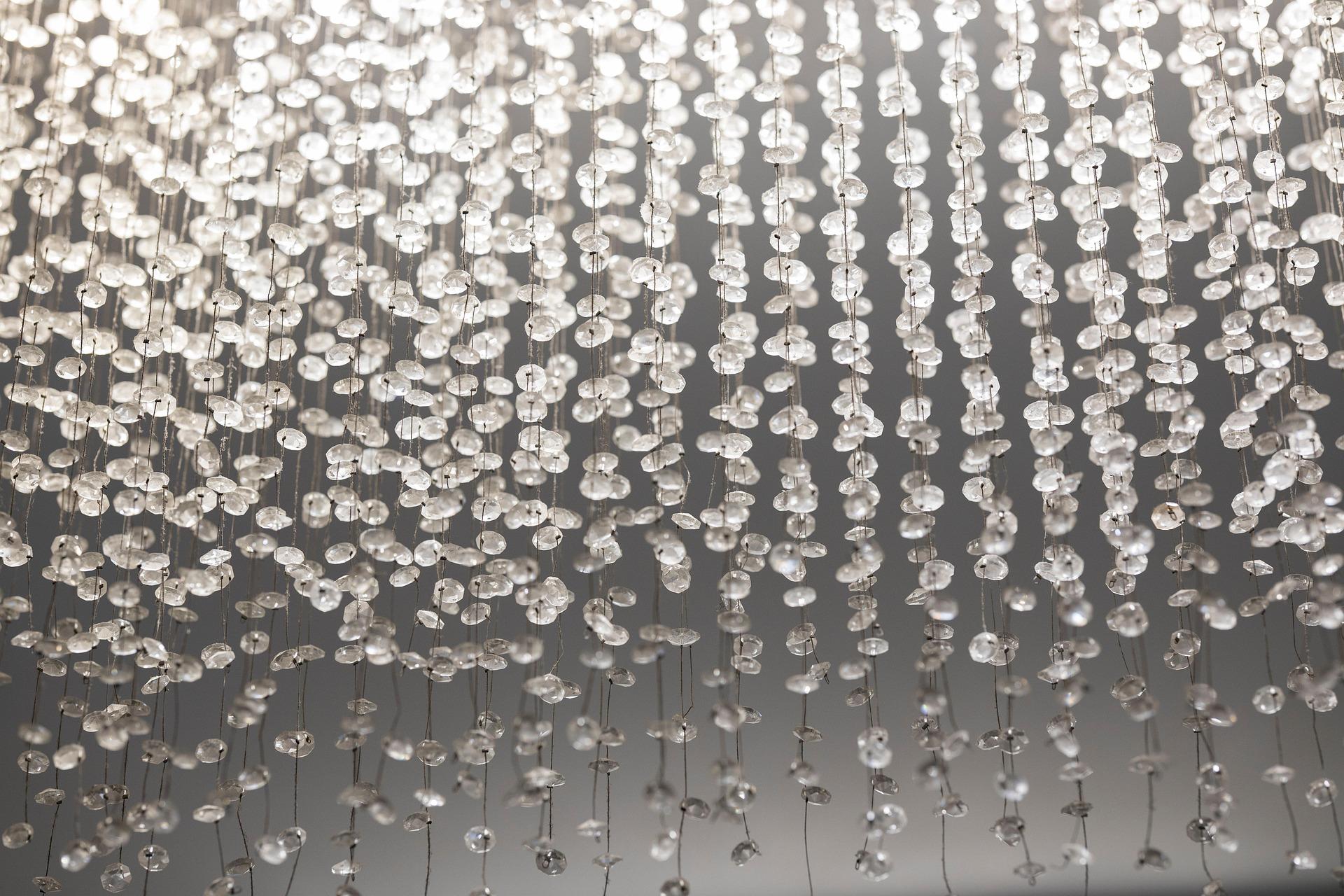 “Na veel kristallen kralen en onderdelen van kroonluchters te hebben verwerkt in mijn kledingontwerpen, is het nu tijd voor een levensgroot kunstwerk”, zegt Allan Vos. “Ik neem het menselijk lichaam als uitgangspunt, waarbij ik de kralen en bedels rijg en verwerk tot een nieuw persoon.”