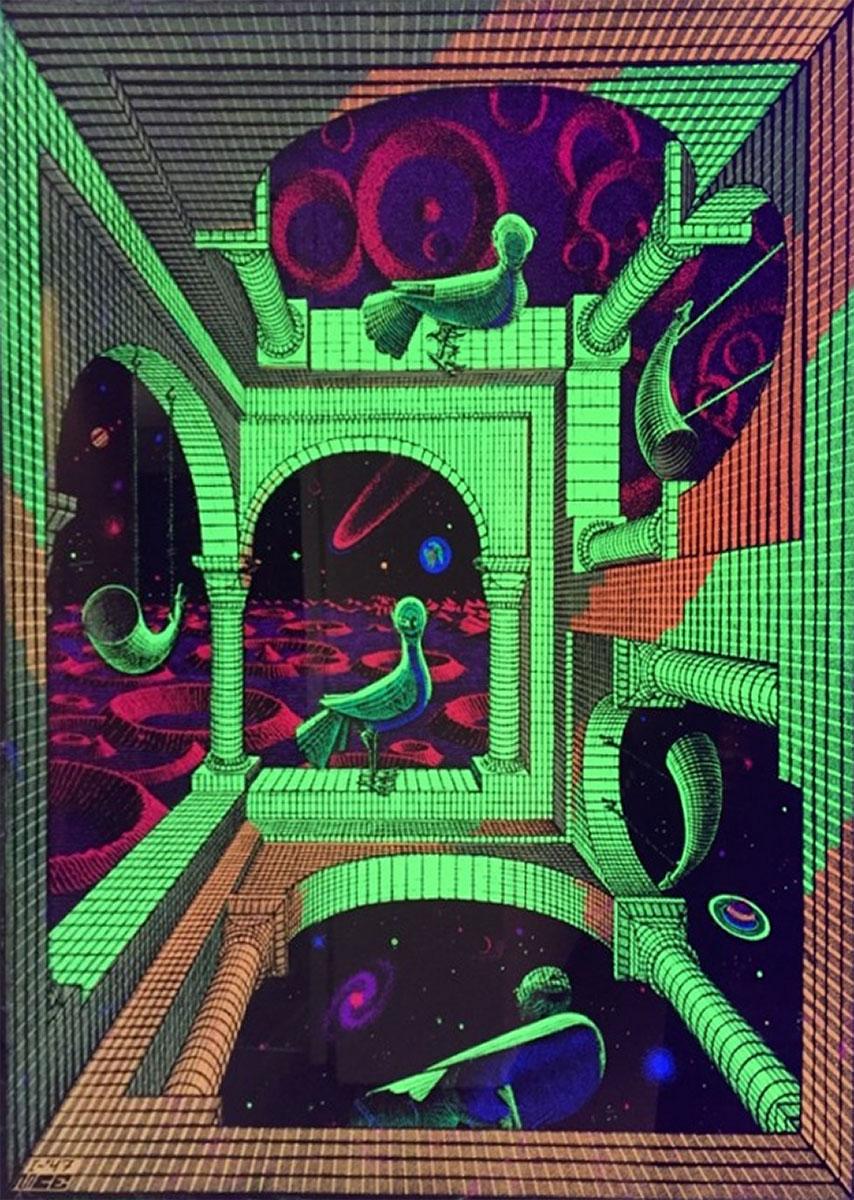 Prenten werden voor de illustratie van psychedelische rock tot klassieke en ‘kosmische muziek,’ (wat dat ook mag zijn). Dit gebeurde vaak buiten Escher om. Waar hij coulant was voor de studenten die zijn werk herdrukten, kon Escher hier dan weer minder om lachen.