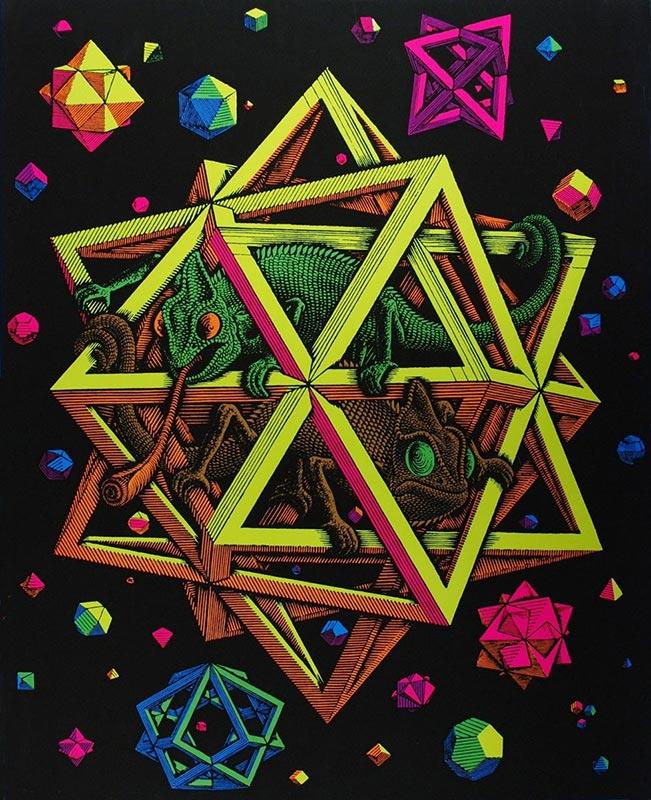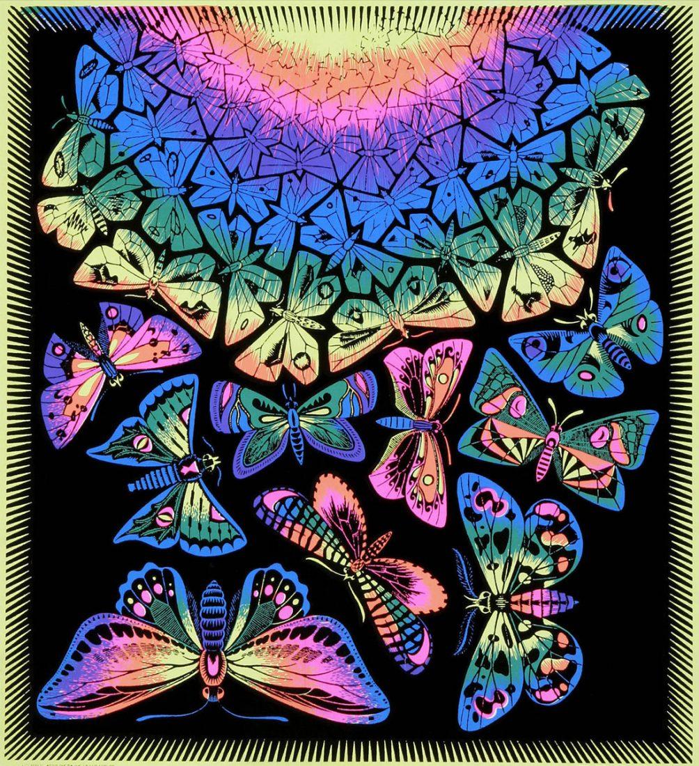 Een taboe waar de hippies zich van bevrijdden was het auteursrecht van Eschers prenten. Onbedoeld pasten de prenten van Escher perfect bij de hallucinerende werking van LSD, een populaire drug onder hippies. Eschers prenten werden omarmd door de protestgeneratie en er verschenen talloze herdrukken geschikt voor black light en soms zelfs met een toepasselijke nieuwe naam. Zo werd de prent Droom omgedoopt tot Bad trip en Drie bollen werd Vrede op aarde. Escher kon er wel om lachen. Wanneer een Amerikaanse vriend hem aanraadt om een advocaat in te schakelen schrijft hij: ‘