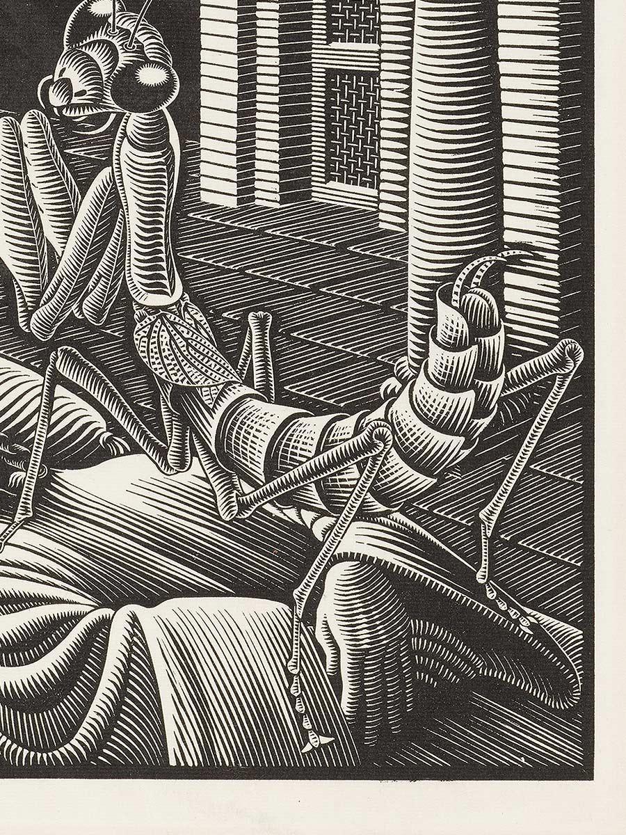 M.C. Escher, Sprinkhaan, houtgravure, maart 1935