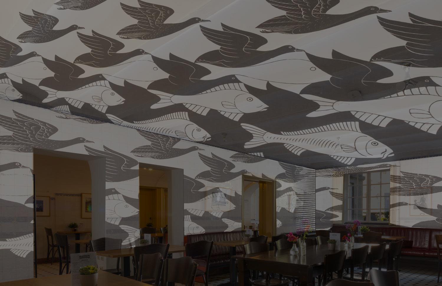 Heb je Eschers onmogelijke gebouwen, eindeloze patronen en metamorfoses al gespot? En ben je nieuwsgierig geworden naar wat er nog meer te ontdekken is als je verder inzoomt? Kom dan chillen in de oude keuken van het paleis! Bekijk in het groot de werelden van Escher: kan je nu meer zien dan eerst?